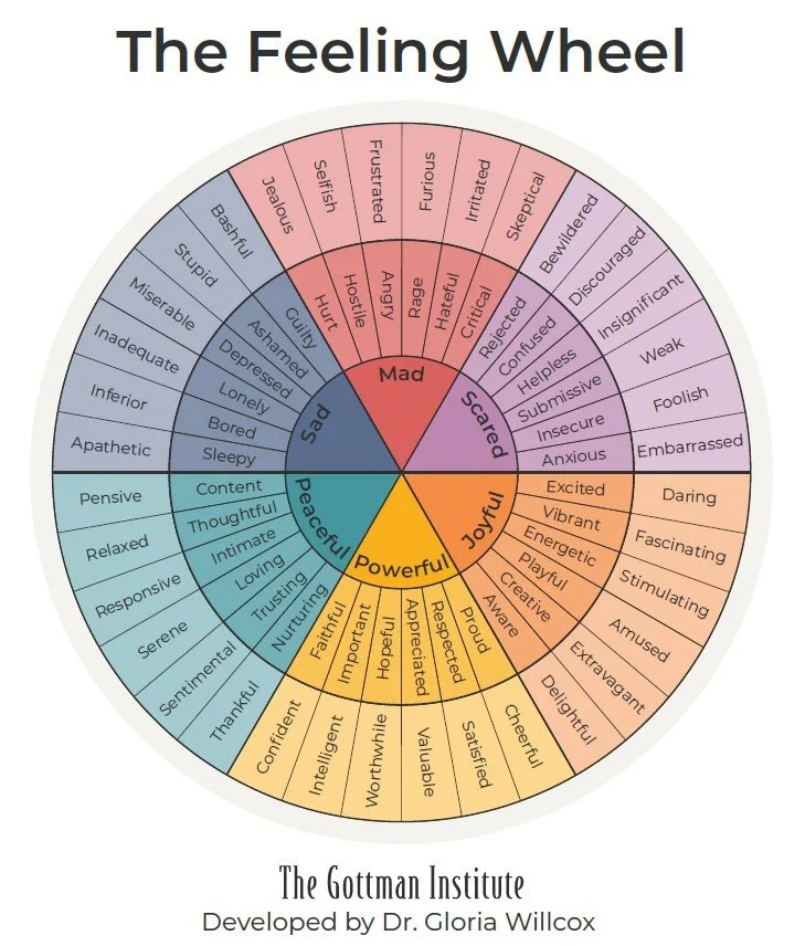 The Feeling Wheel by The Gottman Institute, Developed by Dr. Gloria Willcox